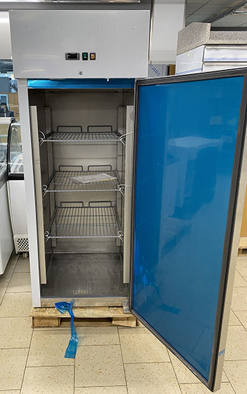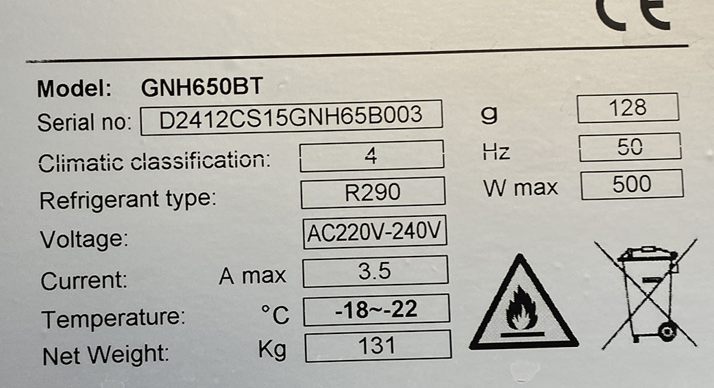 Congelador vertical GN 2/1 con refrigerante R-290 y control digital. Armario congelador profesional de acero inoxidable con capacidad de 650 L. Ofrece refrigeración ventilada, control electrónico, desescarche automático y estantes GN 2/1 ajustables. Funciona con gas ecológico R-290 y temperatura entre -22 °C y -18 °C.