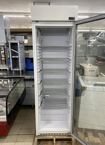 Expositor de congelados con puertas y refrigeración ventilada, eficiente y funcional. Sistema de conservación con gas R-290, ideal para grandes superficies. Ventilación interna, LED, estructura de acero y visibilidad frontal para una exposición óptima.