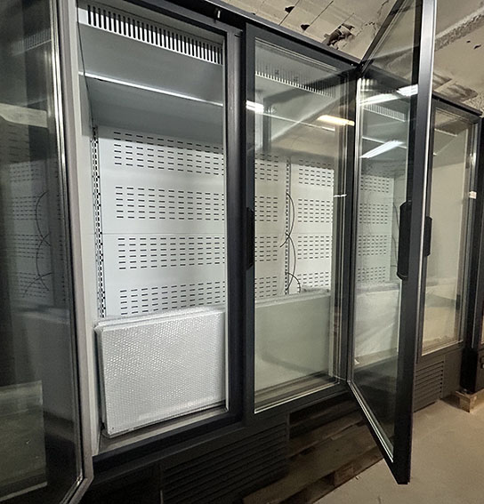 Mural congelador de gran tamaño con puertas Mural congelador de 4 puertas, ideal para supermercados o comercios con gran volumen de congelados.