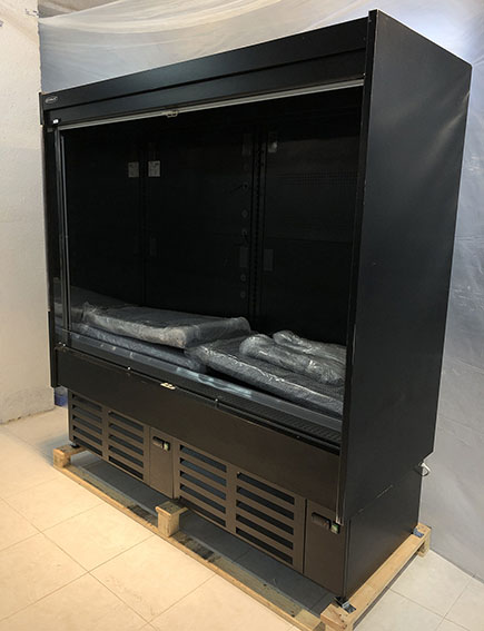 Vitrina mural abierta sin puertas, de fácil acceso y bajo consumo. Diseñada para zonas de autoservicio, incorpora refrigeración ventilada, clase climática 3, laterales cerrados y gas R-290. Ofrece amplia exposición para productos refrigerados en entornos comerciales.