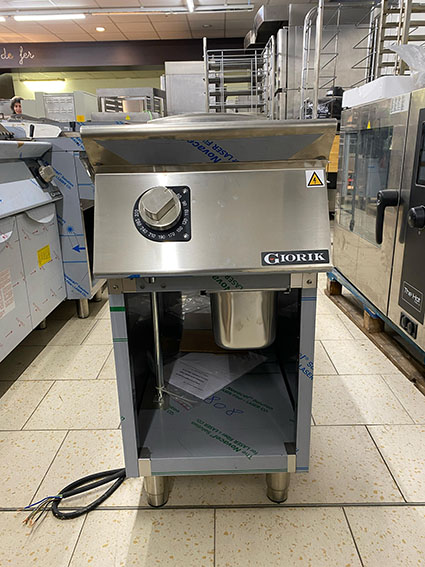 Plancha eléctrica rallada cromada dura. Tiene una superficie de cocción rallada. La placa incluye un orificio para la evacuación de grasas, mejorando la higiene durante la cocción.