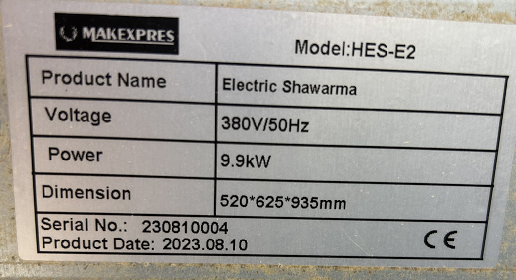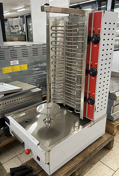 Asador eléctrico para kebab. El modelo HES-E2 es un asador vertical diseñado para preparar kebabs con cocción uniforme, perfecto para restaurantes y locales de comida rápida.