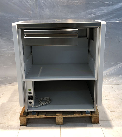 Vitrina de refrigeración con encimera de trabajo y gas ecológico R-290. Modelo compacto y funcional para pastelería o platos preparados. Refrigeración ventilada, encimera superior, iluminación LED y control electrónico con gas R-290.