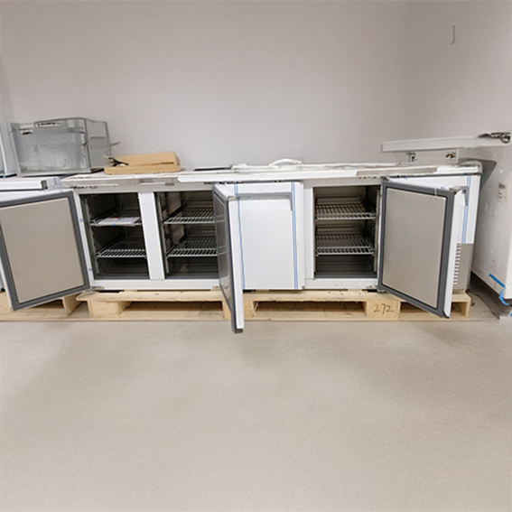 Bajo mostrador de cuatro puertas para almacenamiento.