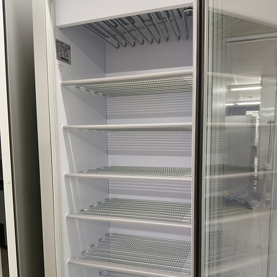 Congelador con puerta de cristal para visibilidad total.