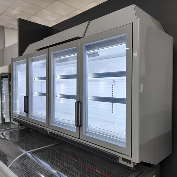 Congelador con puerta de cristal para exhibición.
