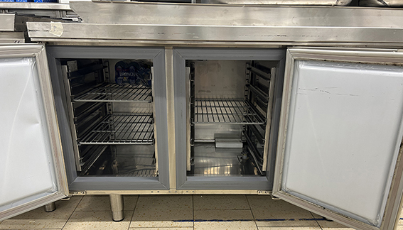 Bajo mostrador funcional con dos puertas y buena capacidad.