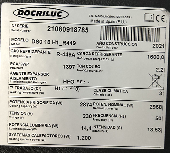 Vitrina mural abierta para autoservicio, con refrigerante ecológico R-499.