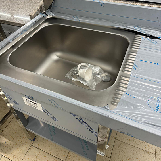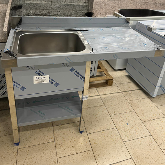 Fregadero con estante inferior de acero inoxidable.