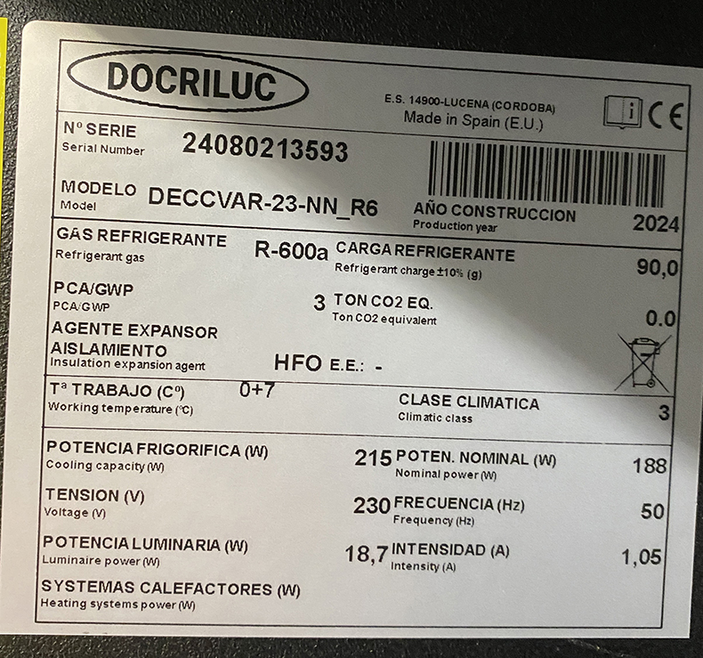 Expositor grande sin decoración, con R-600a y tapas correderas.