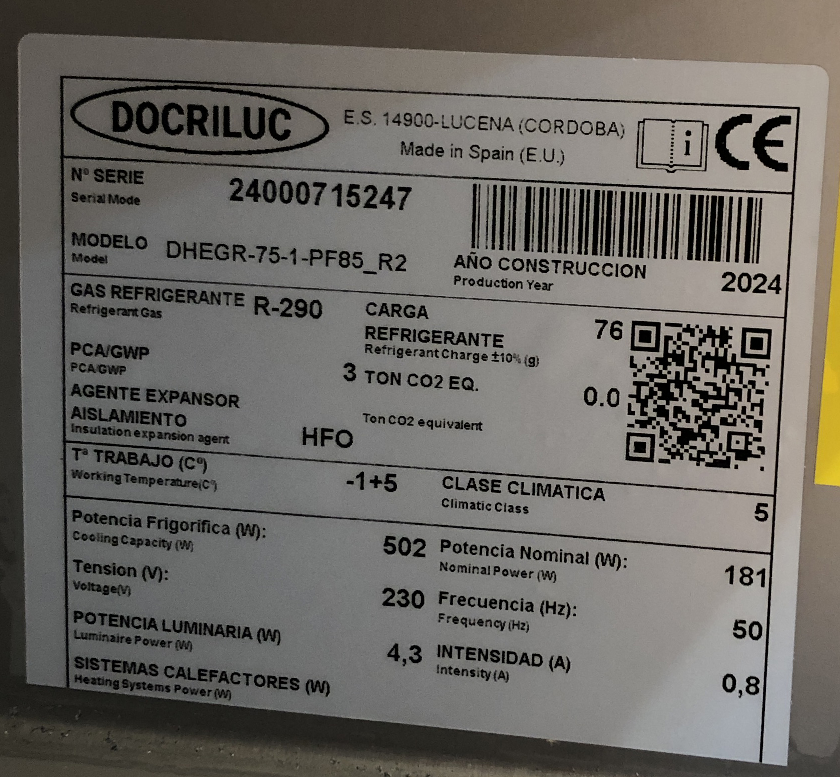 Armario refrigerado GN 2/1 de alta eficiencia y gas R-290.